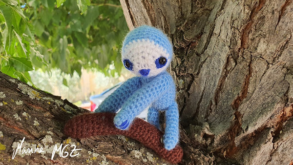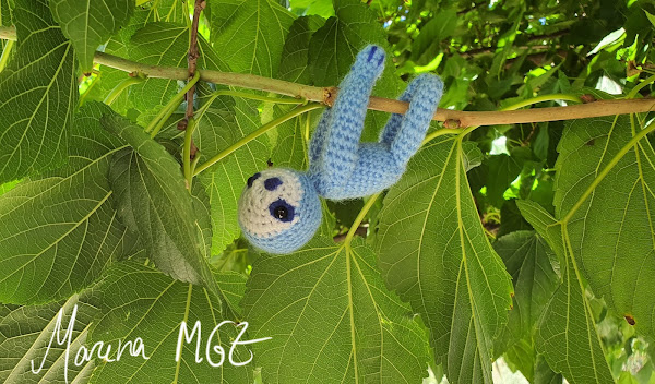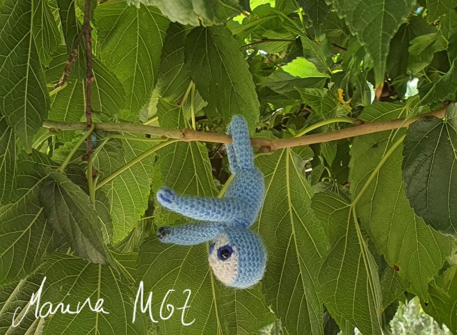 Hace unos días mi niño me pidió un llavero de perezoso azul, empecé a buscar pero no terminé de encontrar ningún patrón, así que le hice este.Copio a continuación el patrón:
