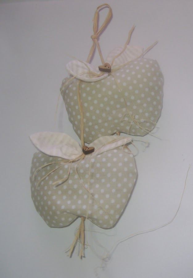 Damos vuelta y rellenamos la manzana. Puede ser lavanda o ponemos vellón sintético con unas gotas de esencia, de las que usamos para hacer jabones o sales de baño.