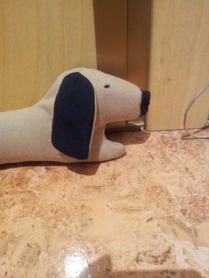 Este perrito para tapar los huecos que dejan las puertas y que no entre frío es de un reto de Facilísimo en el que he participado, facilito y rápido de hacer. El hocio y los ojos los he pintado con pi ...