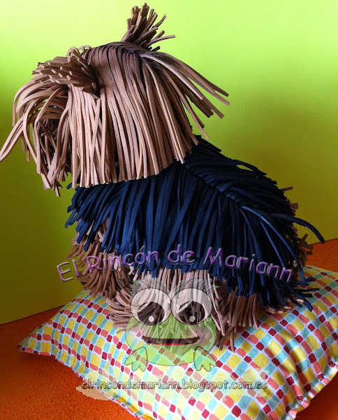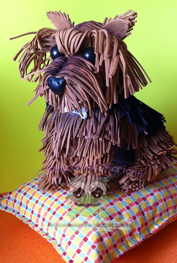 Hoy os voy a enseñar a Luna, una perrita que un día tuvo que decir adiós a su "amita" para siempre. Ella no hay día que no se acuerde de su perrita y cuando vio este Yorkshire en la revista "Manos Maravillosas", no se pudo resistir y me pidió que por favor se lo hiciera lo más parecido posible. Cómo me gustó hacerlo, disfruté muchísimo, sobre todo al estar segura que cuando lo tuviera, la dueña de Luna iba a se un poquito más feliz.