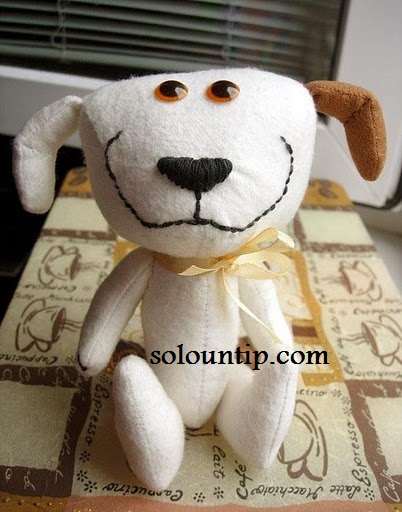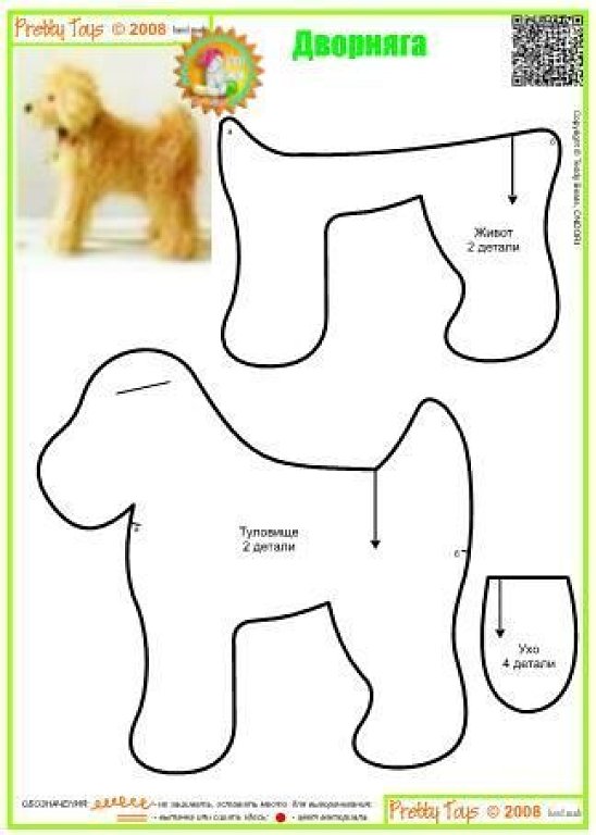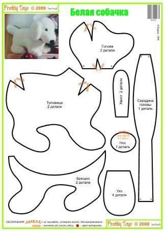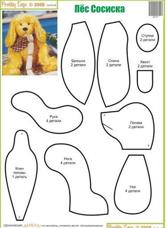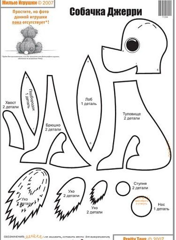 1. Sobre tela de polar color turquesa doble, marcar y cortar los moldes de la cabeza y las orejas del perro. En polar verde limón marcar y cortar las manchas; para los cachetes marcar y cortar dos círculos de polar rosa de 13 cm de diámetro. Luego para realizar la nariz, marcar y cortar la pieza en polar negro y para los ojos, marcar y cortar dos óvalos de polar blanco y dos pequeños círculos en polar negro. Sobre la guata, cortar el molde de la cabeza y de las orejas. Reservar.