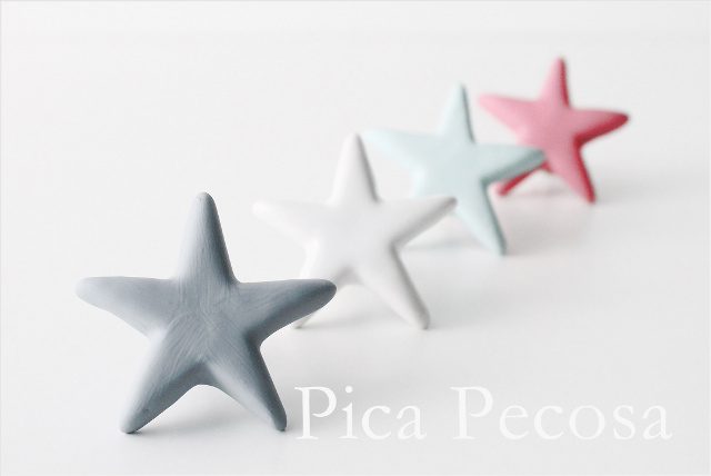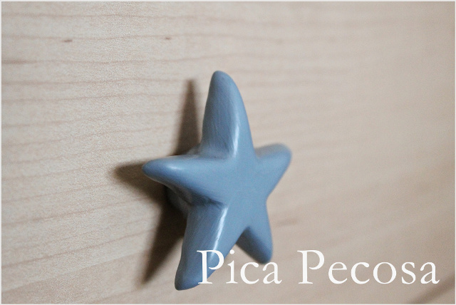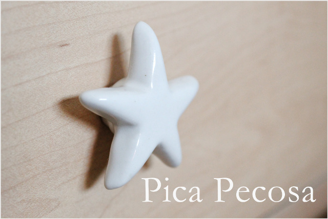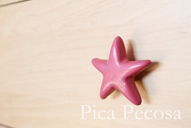 Total que me lancé a la búsqueda de unos tiradores que le alegrasen la cara a mi mueble. Como suele decirse, la suerte estaba de mi lado porque encontré estos de cerámica con forma de estrella en Zara Home Kids.
