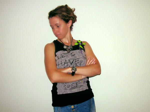 Tenía esta camiseta que es una monería... una de mis preferidas, pero que verano tras verano no me la pongo porque me da una calor tremenda, me iban muy ajustadas las mangas.Solución?