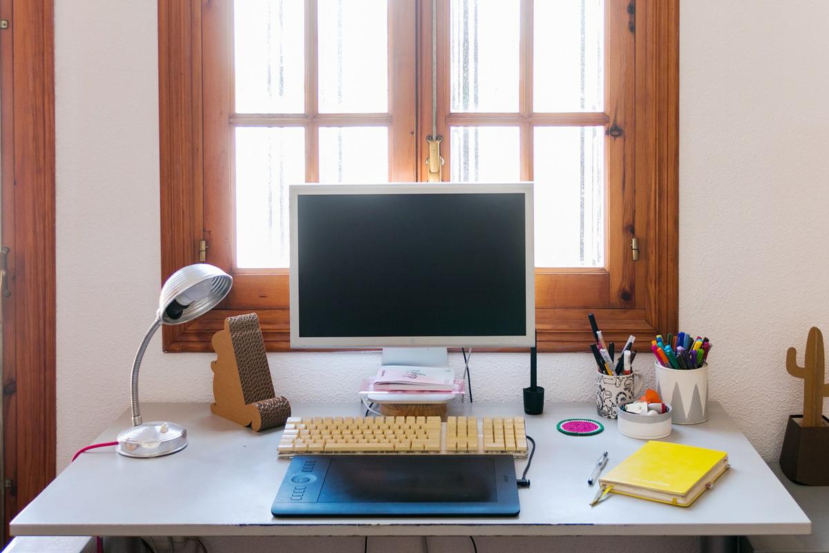 Mientras esperaba a que llegara el vinilo, aproveché para pintar los bordes de la mesa de blanco y hacer una peana para elevar el monitor.
