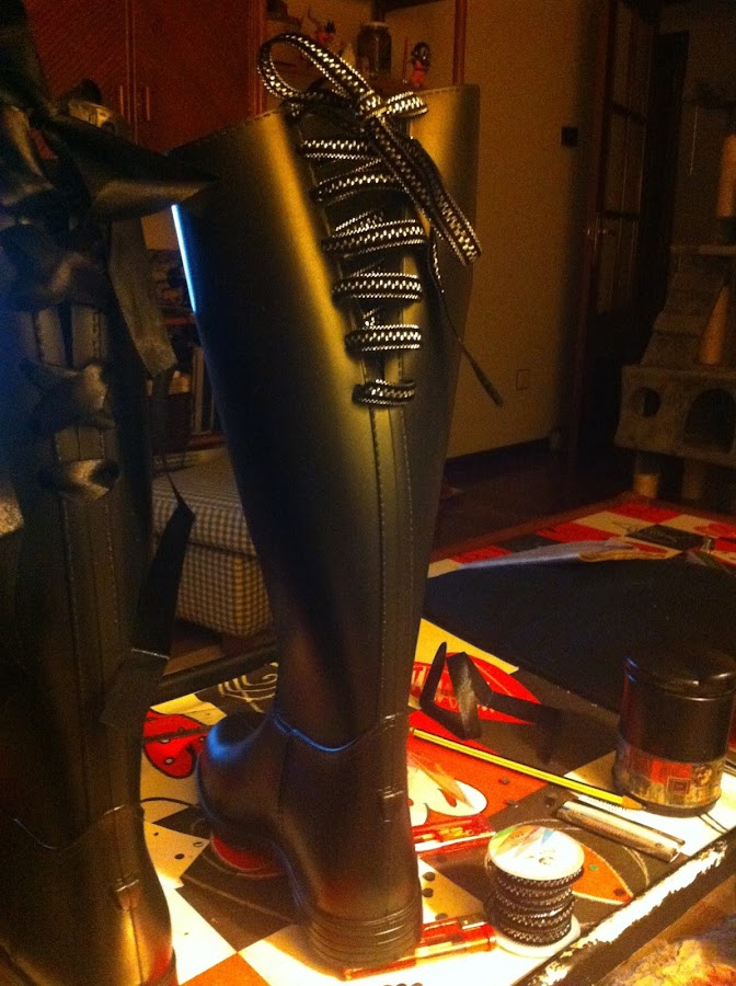 No me gusta comprar zapatos por internet, ya que no tienes la posibilidad de probarlos antes, pero encontré unas botas que me salían por unos 57€ muy chulas y con buenas opiniones, así que decidí arriesgarme. Cuál fue mi sorpresa que cuando me llegaron no me servían. Y es que la caña, al ser del estilo de montar a caballo, acaba estrechándose al final, por lo que era imposible ponérmelas con un pantalón, ya que en el gemelo me quedaban apretadísimas. Tuve una idea; personalizarlas. Pero valiendo lo que me valieron no me atreví a hacerles nada, así que decidí devolverlas e irme al decathlon a cogerme unas botas de montar mucho más baratas (14,95€) de forma que no me dolió tanto tocarlas, ya que si no me gustaba el resultado, mal por mal sólo perdía 15€ y no 57€.