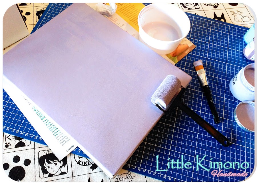 2. Pintamos con la chalk paint la tapa, usé colores pastel y diluí con unas gotas de agua, usando un rodillo de espuma para un acabado más uniforme. Si no es una caja de montar como ésta y es reciclada pintaríamos también la base de abajo con chalk blanca ;)