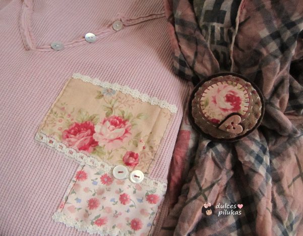 También hice un broche que utilizo para mis foulares o pañuelos,