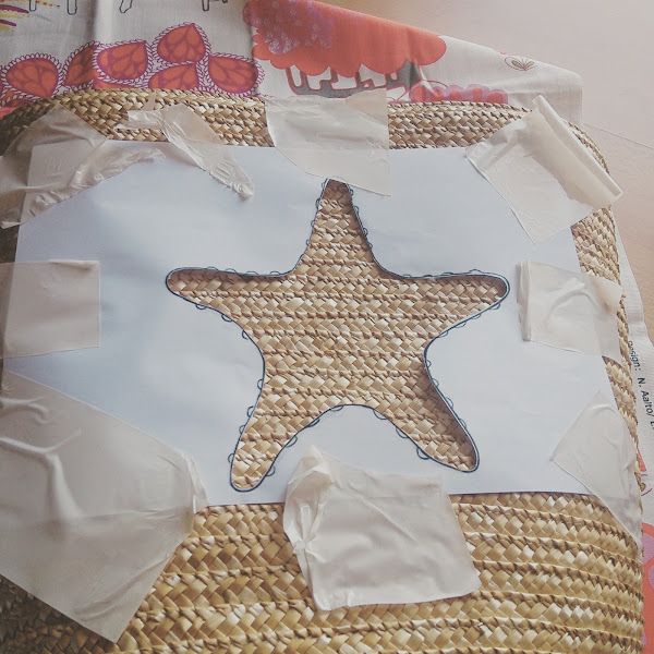 Una vez seca añade lentejuelas alrededor del dibujo y por dentro para hacer el efecto de estrella de mar