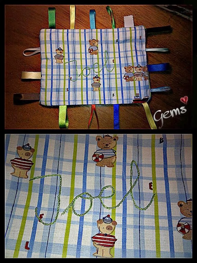 Pitet ideal per a les babetes del seu nadó. El pitet està fet amb cotó 100% i rús. Personall , ideal per aquelles cues en cotxe, a la botiga o senzillament per a que el seu fill s"entretingui i ...