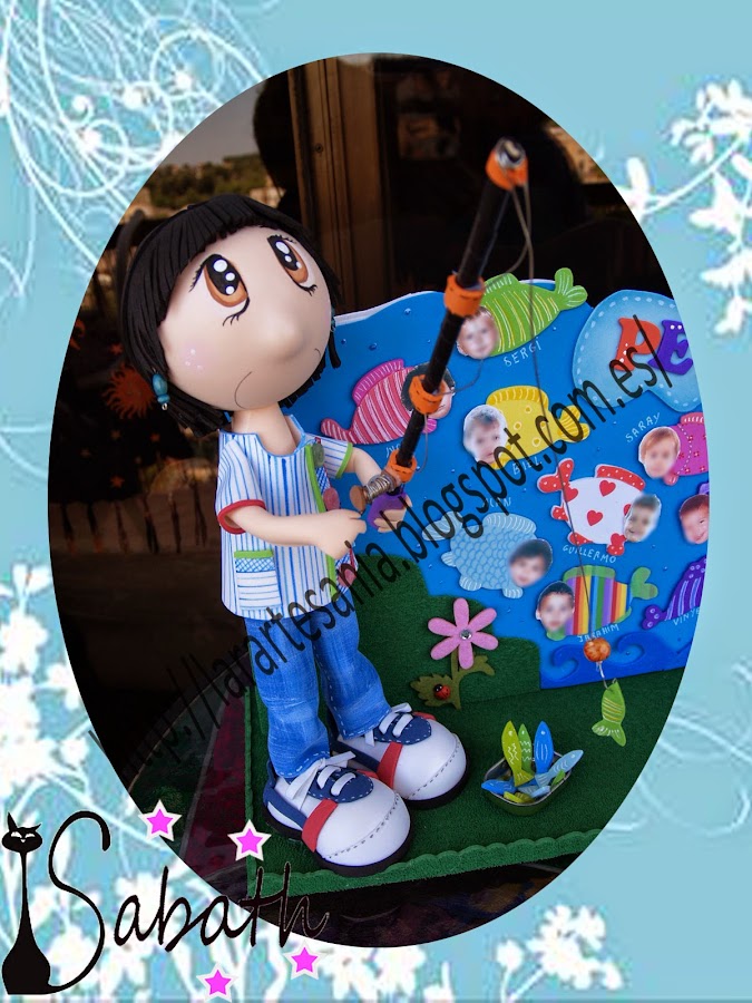 Los pescaditos han hecho muy especial este trabajo, lo que mas me preocupo fue no equivocarme al poner cada foto con el nombre del peque, he desenfocado las fotos para subirlas a internet pero os aseguro que son uno pececillos guapísimos.