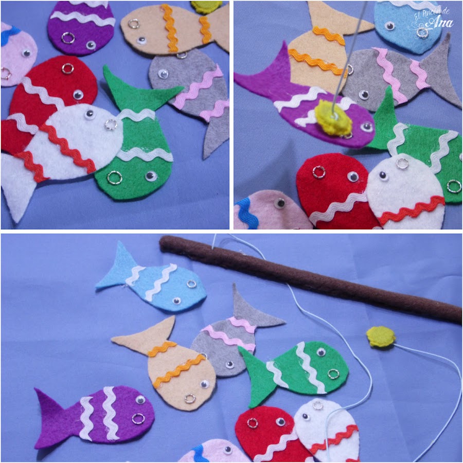 Los juegos grupales son muy comunes en las fiestas infantiles principalmente, como el tradicional pon la cola al burro (no me dirán que no lo conocen), el juego de las sillas, otros como la lotería, palillos chinos, ensartar el aro, o los que la familia va ajustando a su propia tradición, como la tradicional pesca. ¿Quién no ha visto en las ferias los peces de hule con números debajo que debemos pescar para ganar un premio? Pues yo les propongo hacerlos con fieltro y usarlos para pasar un buen rato en una fiesta infantil. Aquí el vídeo de esta manualidad: