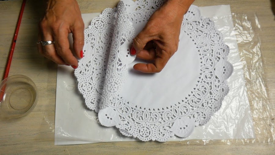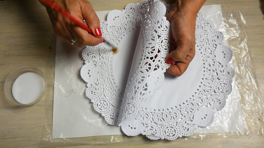 Partimos de éstas blondas o carpetas para apoyar tortas, que se compran en los negocios de repostería