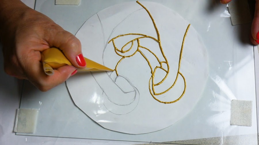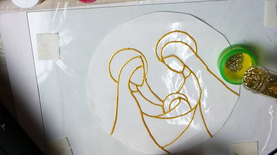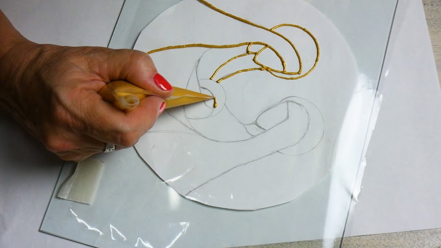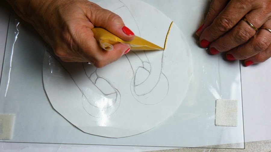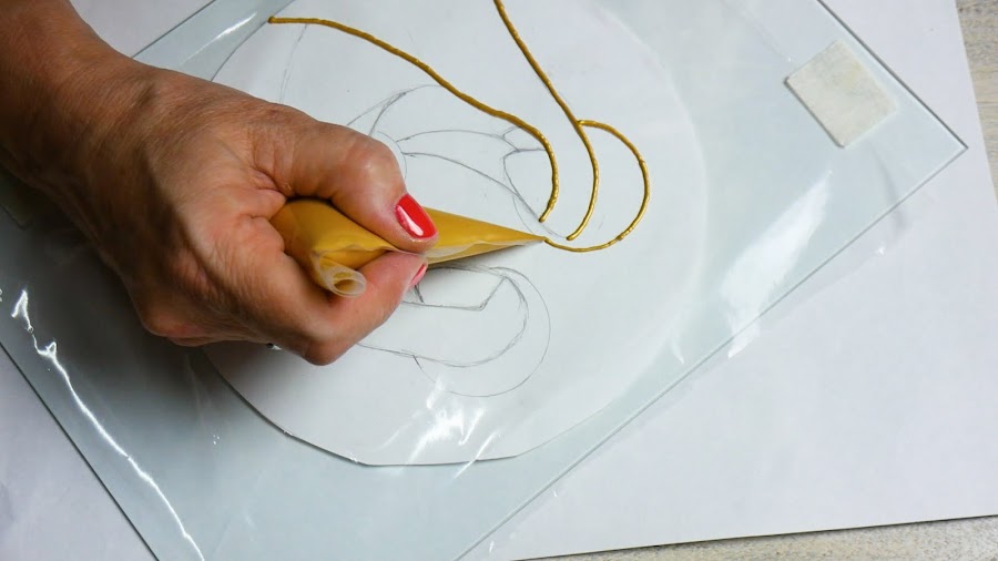 Es importante apoyar todo sobre una superficie bien plana ya que trabajaremos con lacas vitrales y queremos que quede parejo.