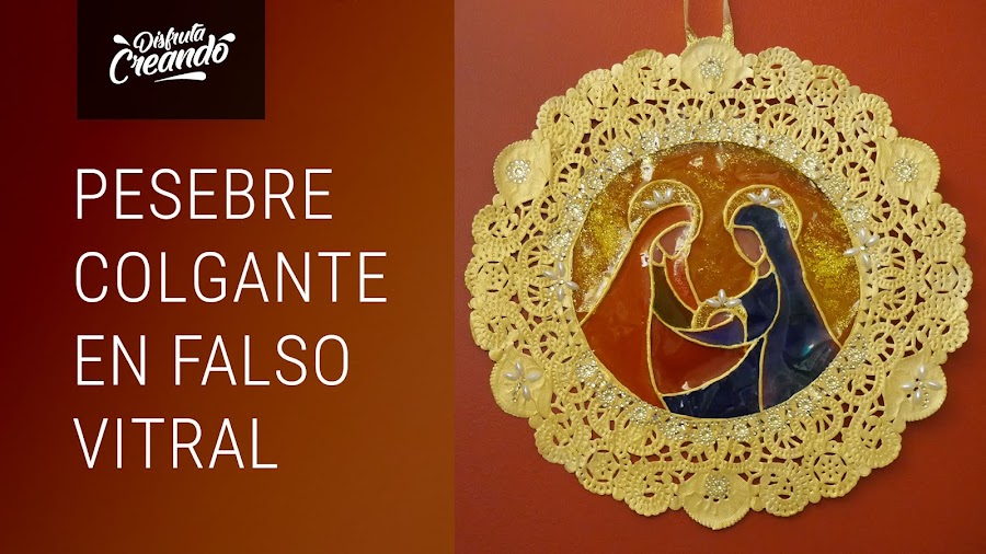 Una vez seco el motivo del centro, lo despegamos de las cintas y lo presentamos por el lado de atrás para asegurarnos que el vitral cubre toda la superficie calada.