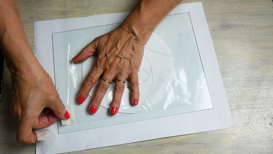 Como ven estando el papel sujeto con cintas a una superficie plana me permite moverlo sin que se corra y puedo estar cómoda para trabajar.