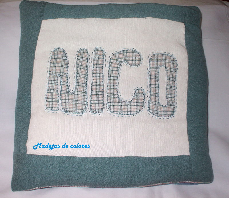 Al mayor decidimos hacerle un cojín-manta personalizado, que le va a venir muy bien, pues está trabajando en Rumania. Ya se lo dio en nochebuena, pues tenía que volver al trabajo. Su madre me comentó que le encantó.