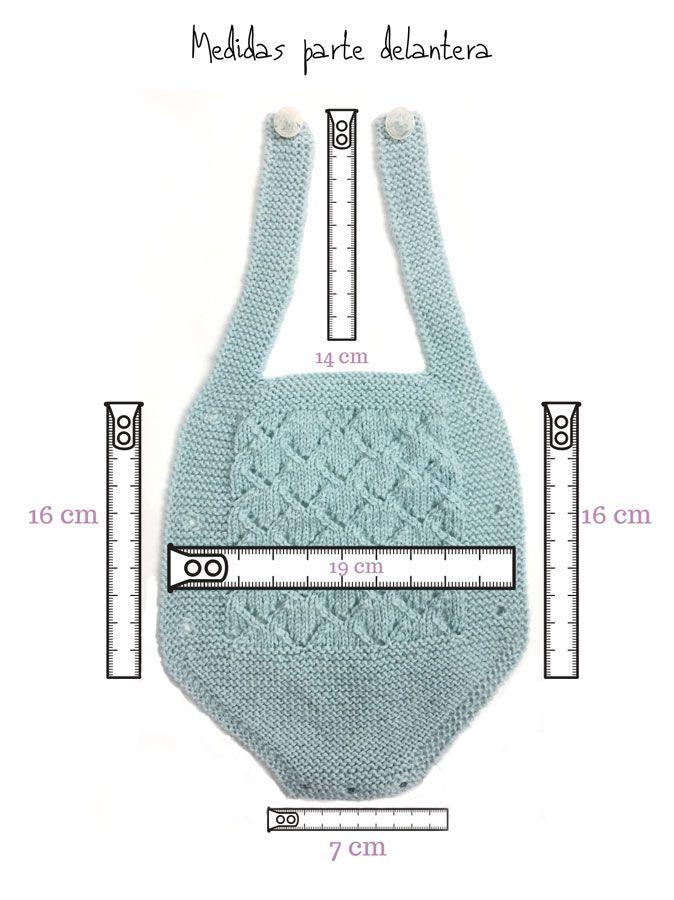 El peto va tejido en dos piezas, las dos empiezan por la entrepierna hacia arriba.