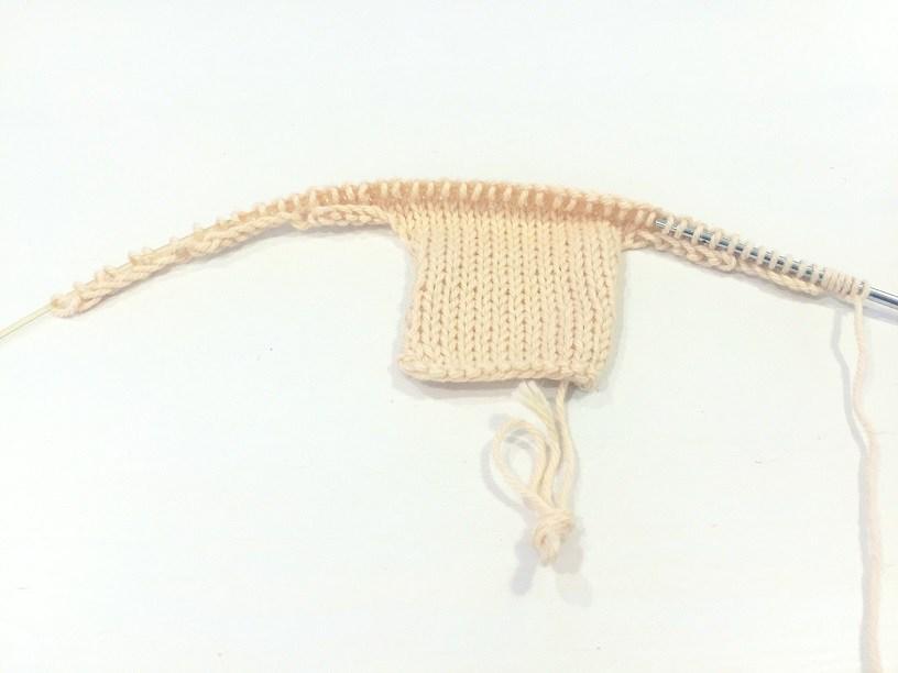 Cambia a las agujas de 3,5 milímetros.La espalda ya quedó cerrada por lo que ahora sólo vamos a tejer la parte delantera.