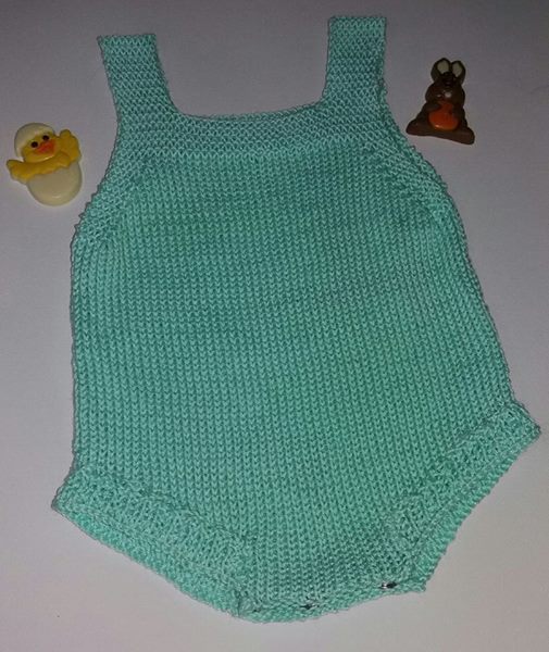 He hecho este peto o pelele, con hilo de algodón finito para este verano. Así Jesús, irá bien guapo y fresquito.