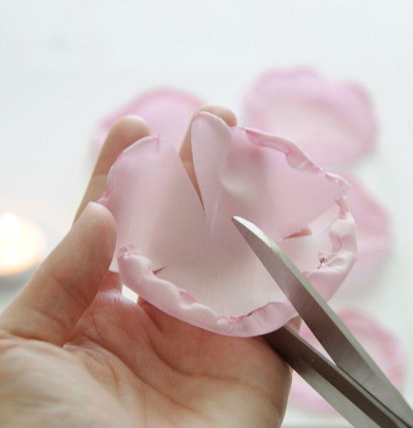 - Criando as pétalas. Segure o círculo de tecido próximo a chama da vela para enrolar.
