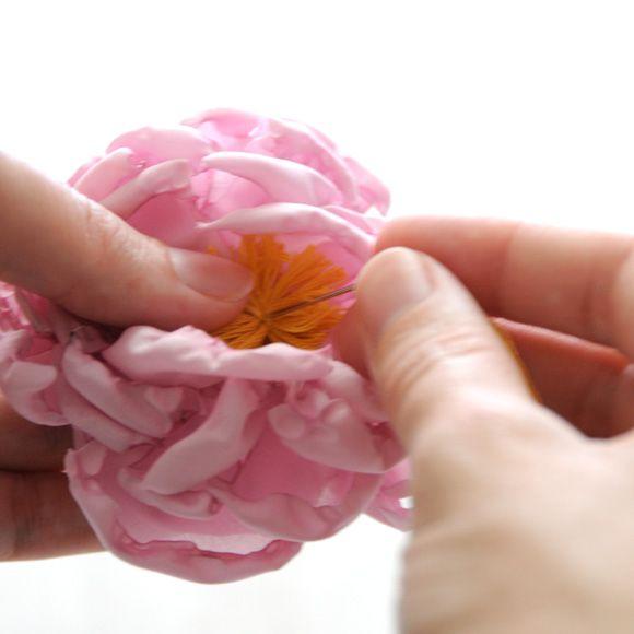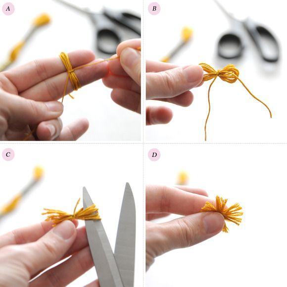 Como fazer o miolo da flor com um pequeno pompom de linha