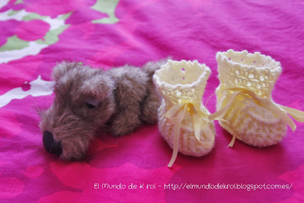 Para hacer estos peuquitos utilicé lana especial para bebé y aguja de 3.5 mm