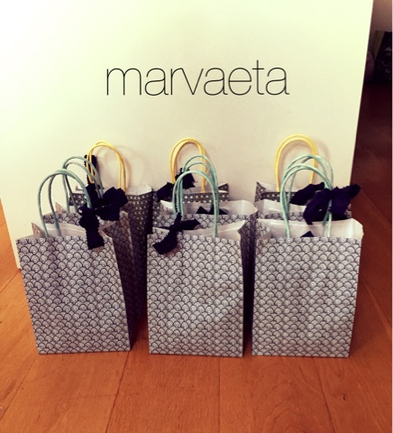 Luego las niñas le pusieron su propia decoración. En un lateral pusimos Feliz cumpleaños y todos nos sacamos fotos en el cumple delante del photocall. Además, es estas bolsas que veis aquí, había un disfraz de gorjuss para cada niña. Medias de rayas y un vestido azul que hicimos con fundas de almohada y tijeras (y nada más) y que hizo las delicias de niños y mayores.
