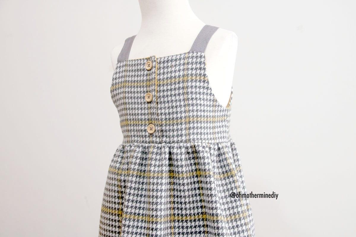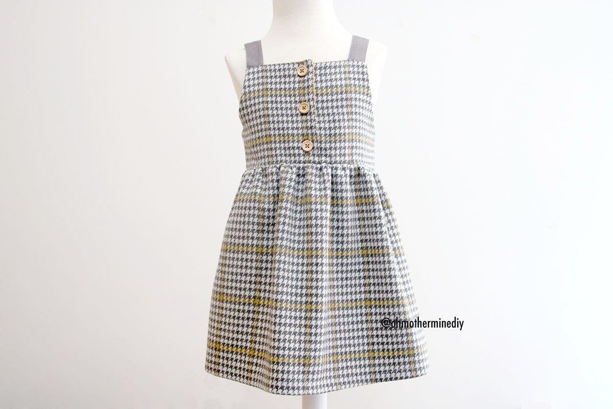 Y tras ese pequeño problema, aquí está el pichi de invierno que os prometí la semana pasada antes de la catástrofe! Es un pichi de niña en lana y cuadros, combinado con grises y mostaza en el forro, que se llevan tanto esta temporada.