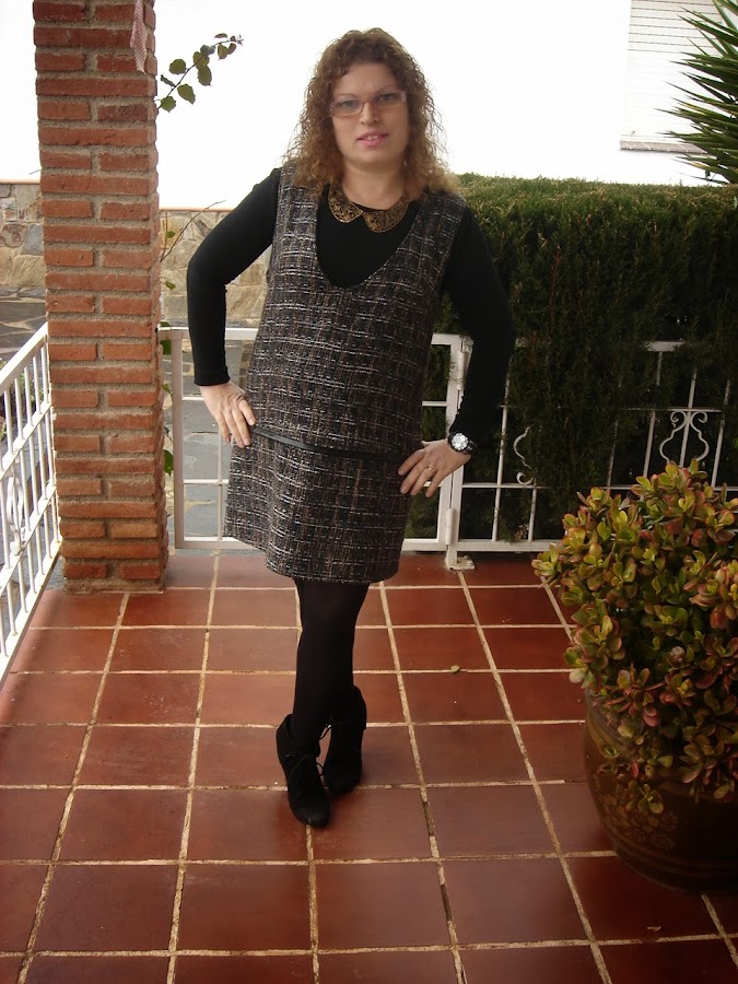 En vez de forrar todo el pichi entero , decidi forrar solo la falda, que es la parte que se puede " pegar " a las medias, ya veis que yo tengo mania de forrar todas las faldas y vestidos sea invierno o verano.