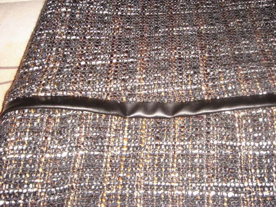 En la union de la parte de arriba con la falda , le he puesto una tira de polipiel de color negro, para romper un poco , ademas le vien al pelo, me gusta como queda.