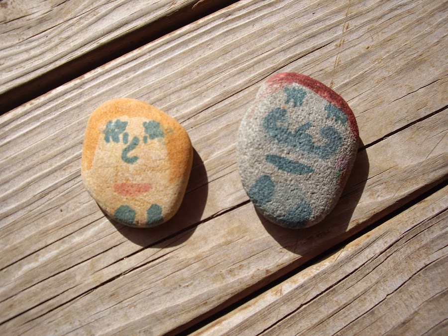 Dicen que de tal palo tal astilla, sera por eso que a mis hijas tambien les gusta hacer manualidades. Ayer me sorprendio una de mis hijas, ya que salio al jardin a juntar diferentes piedras, y luego las decoro con marcadores. Tal vez no hayan quedado perfectas, pero para mi estan espectaculares, por eso se las queria mostrar...