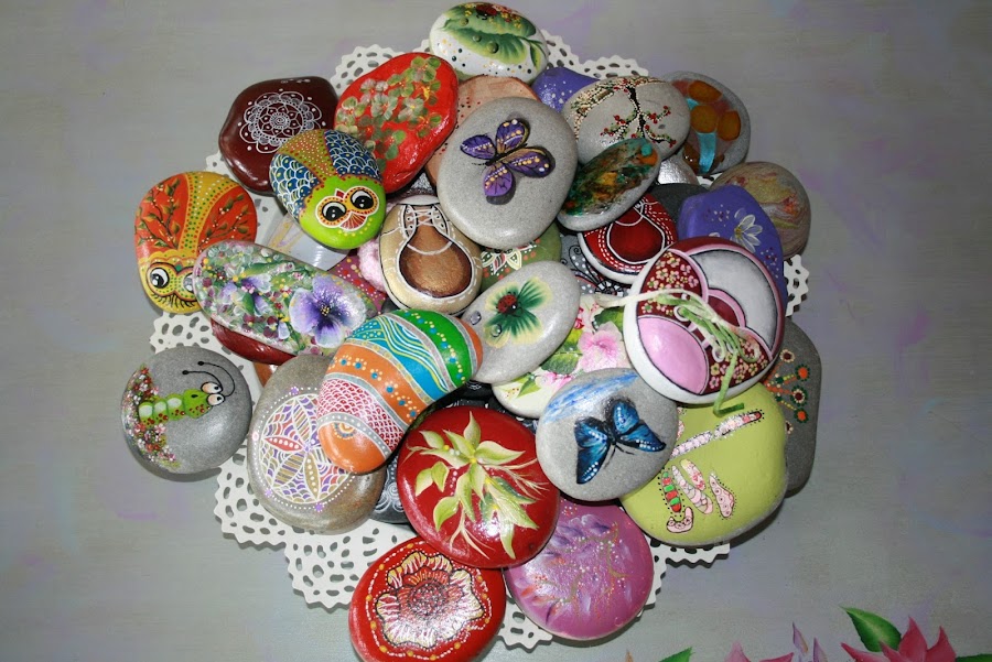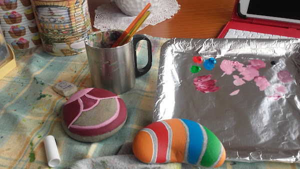 No me canso de pintar piedras...esta claro que es mi debilidad. Es imposible bajar a la playa y no subir cargada con un par de bolsas y eso que tengo que bajar un acantilado!!!!