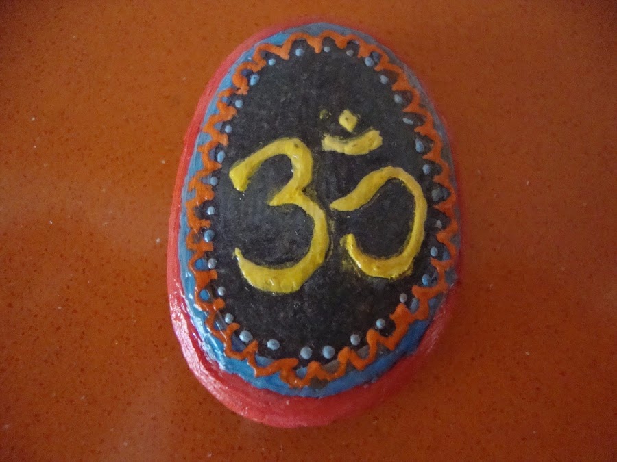 Y con la tercera, hice un pequeño pisapapeles o amuleto que contiene el símbolo del clásico mantra sonoro de la meditación budista "om".