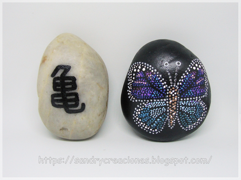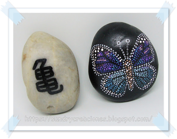 Y aquí tenéis las dos opciones para decorar piedras sujetapapeles juntas: