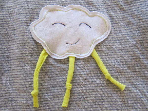 Una aplicación simpática en tela de camiseta... para darle un toque mas cuqui. Los ojos y boca puntada normal en negro