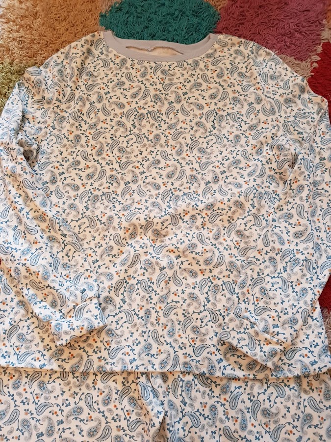 El tejido que he elgido para coser el pijama es un punto elastico finito y el modelo del pijama es mas bien holgado , comodidad ante todo.