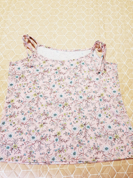 Para la parte superior del pijama he confeccionado un top sencillo de tirantes , tome de referencia un top que tenia por casa y calque el contorno y ha quedado un top fresquito y comodo ya que es un poco holgado , para dormir no me gusta que aprete nada .