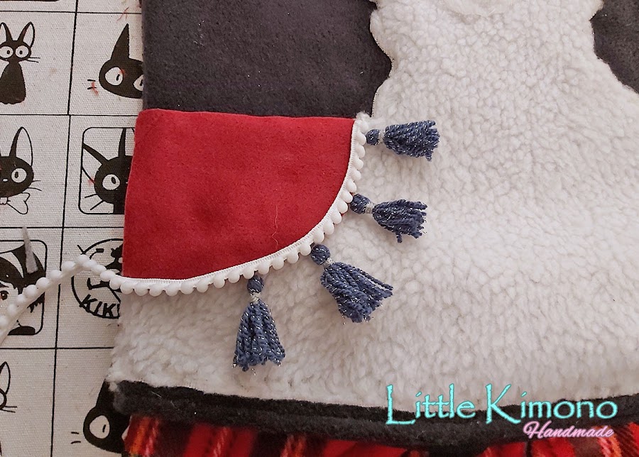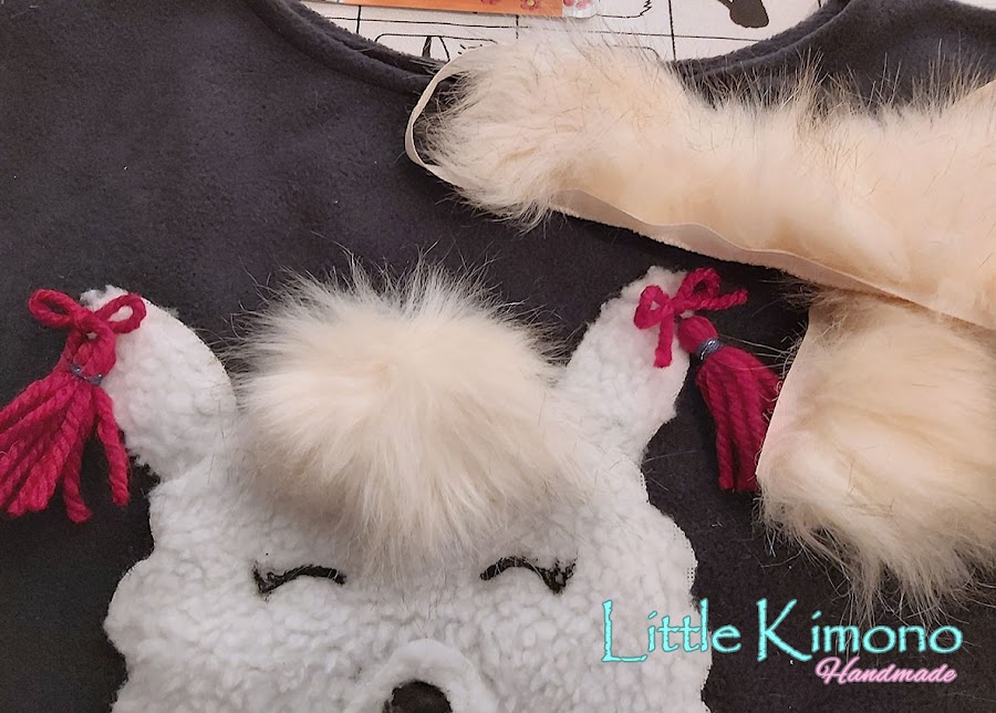 7. Yo las usé para decorar las orejitas y para el poncho que hice con un trozo de fieltro y una tira de madroños blancos. Finalmente coloqué un trozo de cinta de pelo (que tenía del año pasado que usé para el DIY del GNOMO NÓRDICO ) a modo de flequillo y así darle un toque más "cute"^^