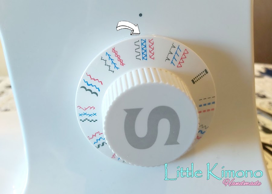 5. Escogemos un hilo en la misma tonalidad de la tela y una puntada que os guste, yo como os comenté en el DIY del PANTALÓN uso la de la imagen porque deja un acabado bonito, podéis verlo en la tercera foto.