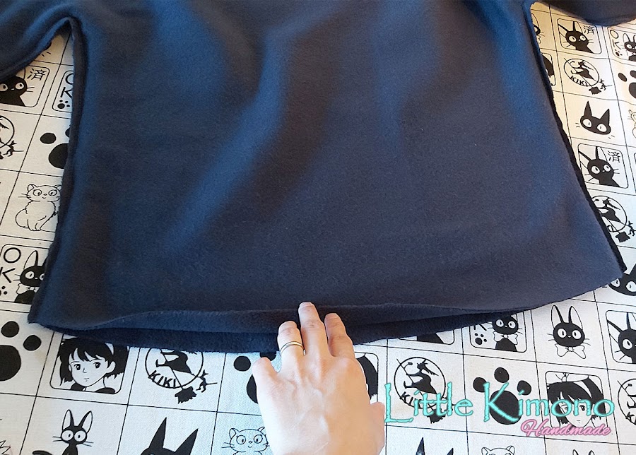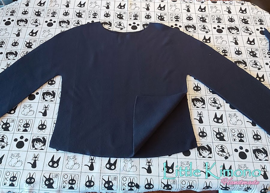 7. Hacemos lo mismo con las mangas y dobladillo de la blusa y ya podemos dar la vuelta al derecho.