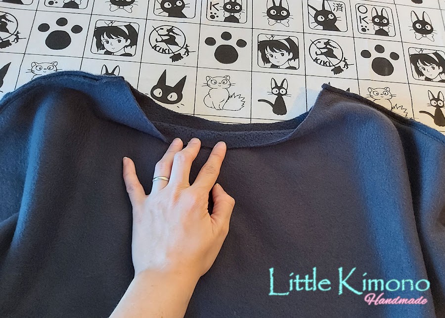 6. Ahora doblamos 1cm el cuello y cosemos, podemos sujetarlo con pegamento textil o alfileres;)