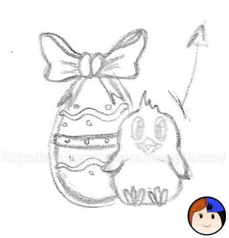 Paso 1. Buscar, pensar y diseñar nuestra idea para el pin de Pascua. Podemos buscar inspiración por Internet, libros, etc... o bien hacer un sencillo dibujo con trazos muy simples para plasmar como queremos que se vea nuestro pin. En nuestro caso hicimos este sencillo dibujo: