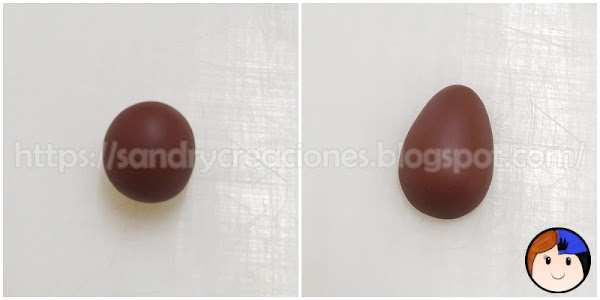 Paso 2. Creación del huevo. Con un trozo de arcilla polimérica marrón hacemos una forma de medio huevo.