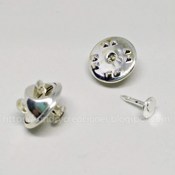 Paso 11. Colocación púa del pin en la pieza de la parte trasera. Toca poner la parte de la púa del pin, para ello tomamos esta parte del pin y clavamos la púa para que sobresalga por la parte trasera visible, dejando que la parte ancha quede por la parte interna donde uniremos el pollito y el huevo y sobre todo que quede a ras de pieza negra y no sobresalga para que no nos moleste al unir las dos piezas.