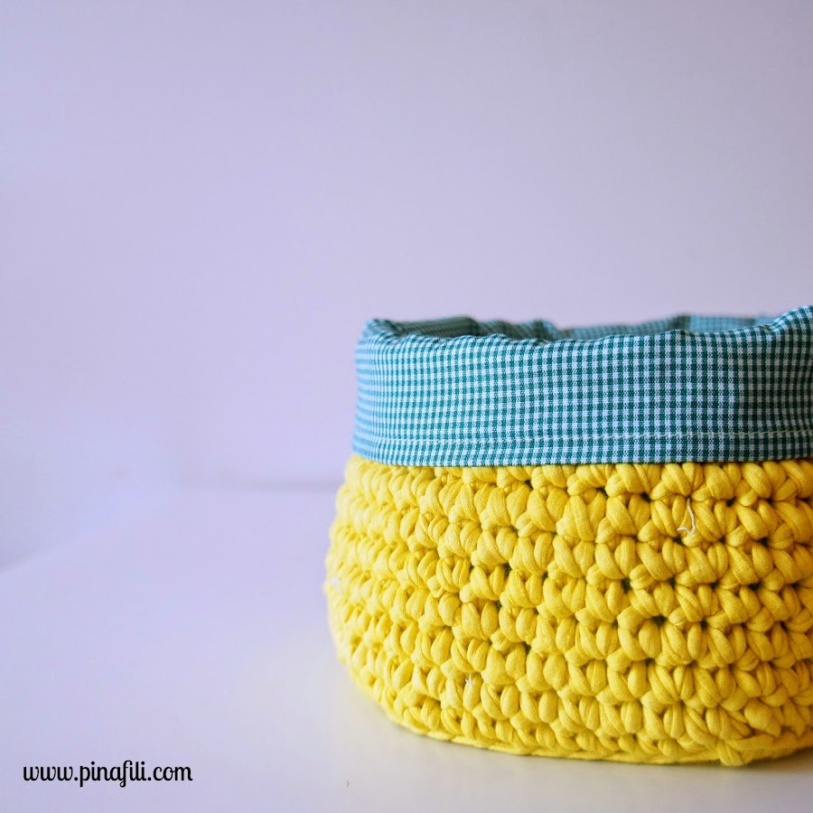 En youtube podéis encontrar muuuchos tutoriales para tejer este tipo de cestos, son muy fáciles, útiles y quedan preciosos en cualquier lugar de casa donde los pongáis.Este en concreto, éste, está todo tejido en punto bajo. La base tiene 60 puntos y las paredes 10 vueltas hechas con un crochet del número 9.