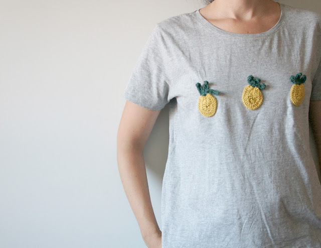 Esta semana os propongo customizar una camiseta básica uniendo dos tendencias, las piñas y el crochet, os animáis?