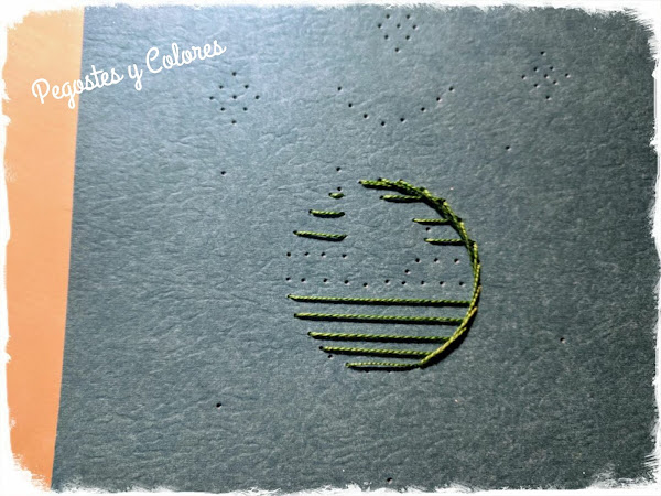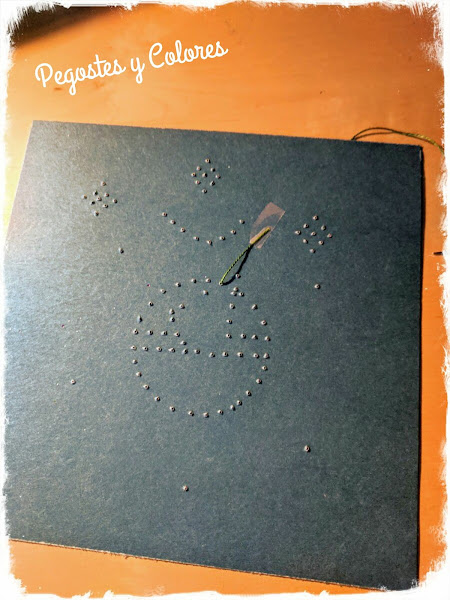 3.- Comenzamos a perforar, puedes usar la misma aguja con la que vas a bordar empujándola con un dedal para proteger tus dedos o un punzón como el que de ve en la foto. Solo asegurate en otro pedazo de carton aparte, que la aguja que vas a usar para bordar pasa por las perforaciones de tu punzón.