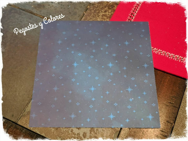 9.- Para tapar el reverso, tome un cuadrado ligeramente mas grande de papel scrapbooking, lo pegue con pegamento blanco y luego le puse un libro pesado encima al borado para que no se arrugara.