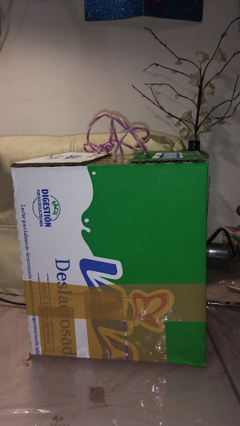 La hice con una caja de leche donde viene el paquete de 12 lt.
