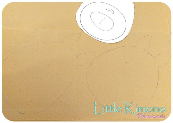Paso a paso: 1. Primero vamos a dibujar 2 veces sobre el cartón la silueta de nuestro personaje, una para la parte frontal y otra para la parte trasera de la piñata. Yo usé cartón de una caja para reciclar pero si lo preferís podéis comprarlo en una librería ;)